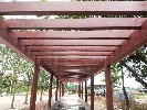 安徽合肥庐江白湖廊架外墙木纹漆施工